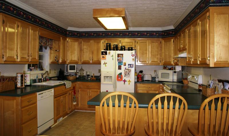 Above is a Red Oak kitchen with our custom smooth arch raised panel cabinet doors.