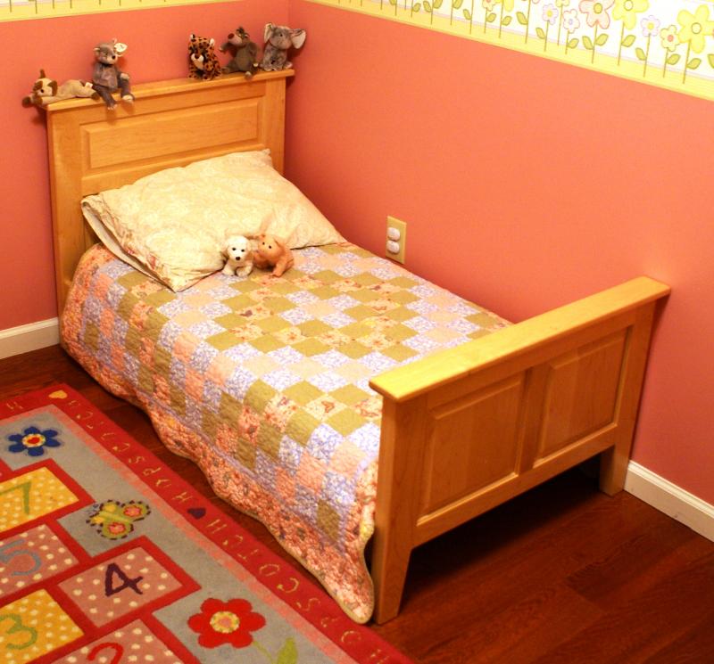 Below is a picture of a toddler's bed. The headboard and footboard was made by sandwiching two raised wainscot panels back to back.